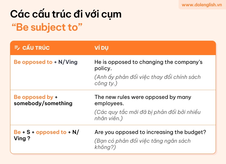 Cấu trúc "be opposed to" là một phương tiện hữu ích để nói về sự phản đối hoặc không đồng ý. Hiểu rõ sự khác biệt giữa "be opposed to" và "as opposed to" sẽ giúp bạn giao tiếp linh hoạt và chính xác hơn!